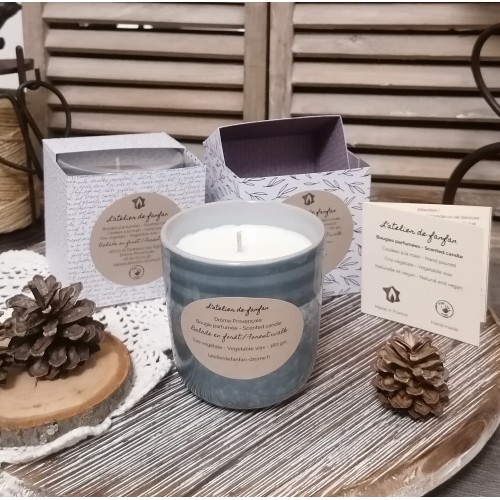 Cette bougie parfumée de la gamme "Céramique" à la délicate senteur Balade en forêt est fabriquée à base de cire végétale de soja 100% naturelle et végan de provenance Européenne, et d'un assemblage d'huiles essentielles bio de menthe poivrée, pin sylvestre et ravintsara HEBBD*.