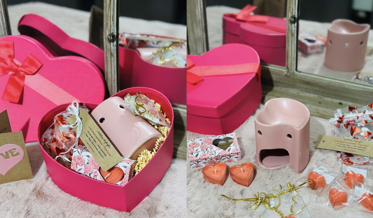 Le tout présenté dans un coffret en forme de coeur.